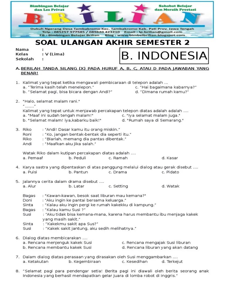 Soal Uas Bahasa Indonesia Kelas 5 Sem 2 / Soal Uas Kelas 5 Semester 1 Semua Mata Pelajaran Matematika Kelas 5 Matematika Ipa - 10.06.2020 · 2.2.4.kegiatan usaha du/di 2.2.5.